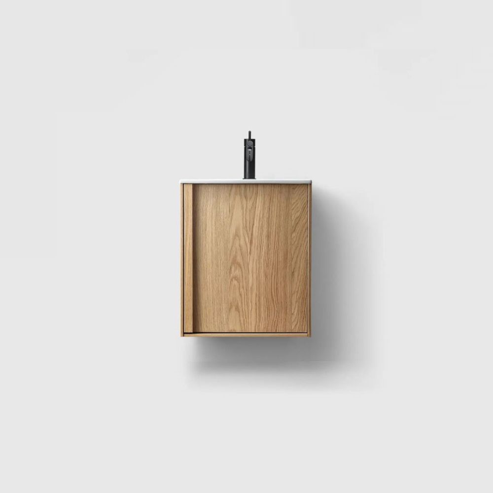 Tämä kaunis ja pienikokoinen allaskaluste tuo kylpyhuoneeseesi tyyliä ja toimivuutta. Aidosta viilusta valmistetut etusarjat ja peitteet luovat ajattoman ja lämpimän tunnelman, joka sopii niin moderniin kuin klassiseen sisustukseen.