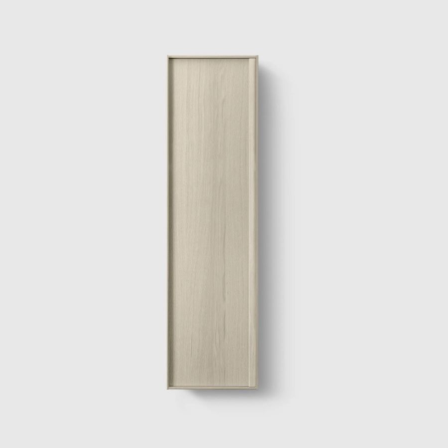 H2-sarjan seinäkaappien upea italialainen viilu on saatavilla useissa väreissä: White Wood, Light Ash Wood, Oak Wood, Walnut Wood, Smoked Oak Wood ja Dark Wood. Viilun puunsyykuvio on pysty.