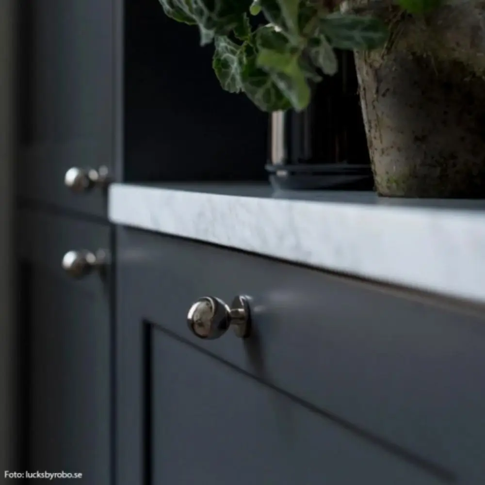 Nikkelin sävyinen Solliden nuppivedin on modernin raikas valinta, kun haluat huonekaluun ripauksen hillittyä eleganssia. Sen pehmeä, pyöreä muoto tekee miellyttävän käyttää, ja massiivinen rakenne tuo siihen laadukasta tuntumaa.